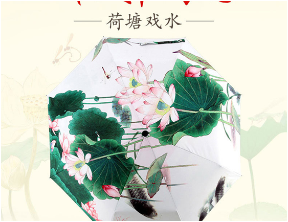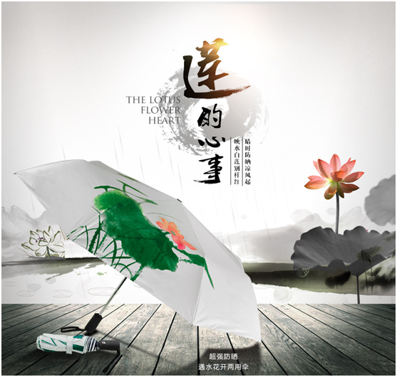 公元1072年(nián),周敦頤來到江西,創辦了濂溪書院,從此開始設堂講(jiǎng)學,收徒育人。造就(jiù)一篇《愛蓮說》,其佳句“出淤泥而不染,濯清漣而不妖,中通外直,不蔓不枝,香遠益清,亭亭淨植,可(kě)遠觀而不可褻玩焉”成為千古絕唱,至今仍膾炙人口。借助(zhù)這種(zhǒng)意境,若將(jiāng)此創意連(lián)接在雨傘(sǎn)上,頗有一番韻味與詩意,在(zài)深圳這樣一個快節奏的地方,人們已經(jīng)遠(yuǎn)離了生活原本的樣子,在快速奔忙著,如果有這樣的一把三折傘,陪著(zhe)你(nǐ),多好。