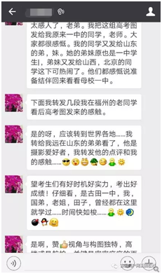 通過(guò)微(wēi)信朋友圈(quān),圖片在海外也火了一把。留美工作的邱女士說,“此情此景,將高考這一中國特色,表達得淋漓盡致,色彩明豔,代表著(zhe)一種希望(wàng)。”她說,一些外國朋(péng)友通(tōng)過這組圖片,認識了中國高考。