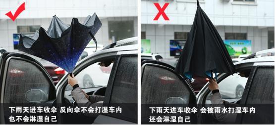 由(yóu)於傘是反向(xiàng)的,撐傘收傘的時候不容(róng)易被雨(yǔ)水打濕(shī)。尤其進車收(shōu)傘的時候,它(tā)的好處就充分發(fā)揮出來啦~
