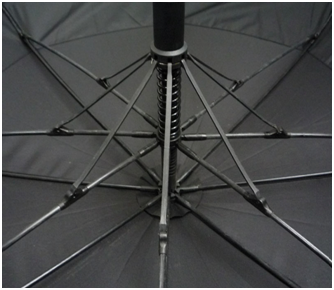 由於(yú)傘大,往往比較兜風,一陣大風(fēng)過後,力氣小點的,往往拿不(bú)穩,越來越人性化的設計,將這(zhè)難題較好(hǎo)的得到(dào)了解決,在高爾夫(fū)傘麵上做(zuò)了改良(liáng),常見的做法是(shì)把傘麵做成雙層(céng),下麵的(de)一層傘麵的頂端透空,然後上麵的(de)一層蓋在下(xià)麵的(de)一層上麵,比透風的孔大一些,剛好蓋住,上下兩層少量針線縫合(hé),正(zhèng)常使用的(de)時候,雨水進入不了傘裏麵,風吹過來的時候,順差透空的頂被排了出去。還有一做法與些(xiē)方法有異曲同工之(zhī)處,幹(gàn)脆將傘架做成雙層(céng),有點像中國的(de)亭子(zǐ),風(fēng)過得去,雨進不來。