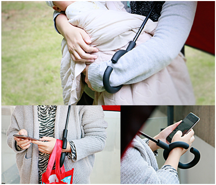 更(gèng)有獨創(chuàng)C型免持手柄,撐著傘也能做其他事情!