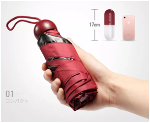 我們(men)的膠囊傘僅17cm短,一手可握,可與iphoness手機(jī)媲美大小,專門為小包設計。