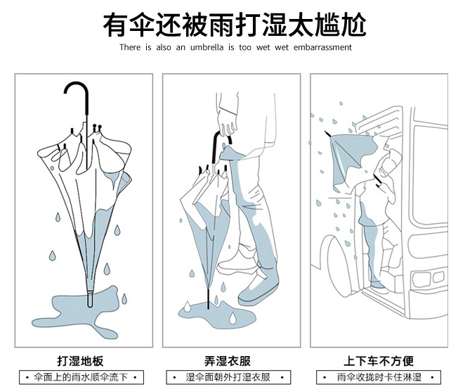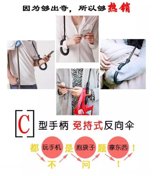 它是(shì)C型免(miǎn)持反向傘!咱們來看看它是怎麽幫咱們解決以上問題的? 一、顛覆傳統!免除你上下車濕身尷尬危機,而且(qiě)雨傘放在車(chē)上也不會(huì)弄的濕噠噠的哦