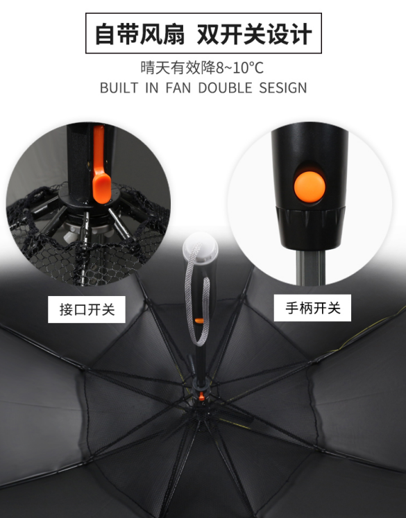 我們開發出風(fēng)扇傘這個創意雨傘,很多客戶朋友都說是不(bú)錯的,得(dé)到了大部分肯定:真是(shì)不(bú)錯的創意(yì),撐著傘太熱了,可以打開風扇吹風,覺得風力不(bú)給(gěi)力,它的升級版還可以接上水瓶(píng)直接變成噴霧。仿佛就站在風扇(shàn)傘下,一陣陣(zhèn)清涼~ 這樣子看來,風(fēng)扇傘(sǎn)的前景還是非常有潛力的。