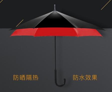 晴天防曬隔熱,清涼舒適 雨天(tiān)不易透水,幹爽出行 第二層花色碰擊傘布 為緊密均勻的優質防水專用傘布 遇水即開,可(kě)出(chū)色防水 一切都是為了傘下人的舒適優雅
